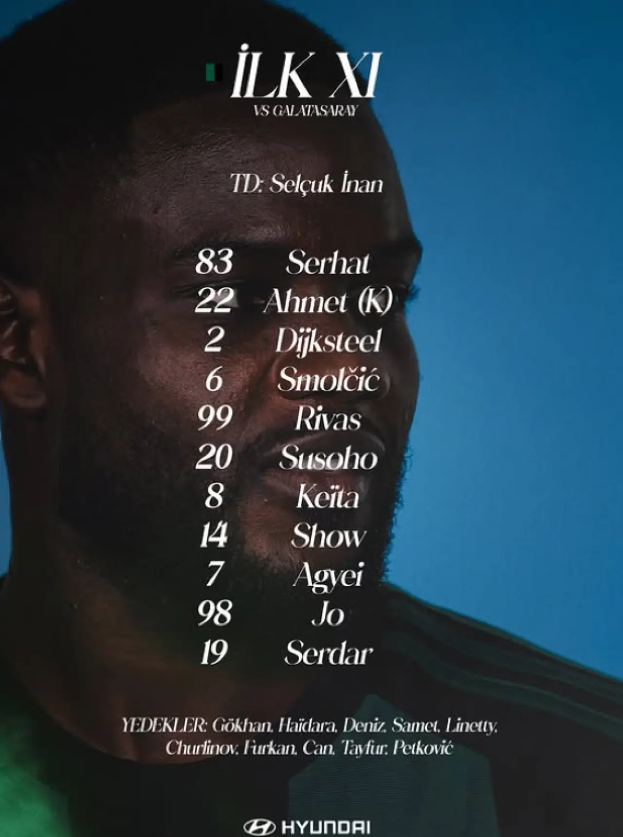 Kocaelispor cephesinde ise Wieteska, Jovanovic ve Balogh’un sakatlıkları nedeniyle forma giymediği açıklandı. Karşılaşmayı hakem Oğuzhan Çakır yönetti. Futbolseverlerin büyük ilgi gösterdiği mücadele saat 20.00’de başladı ve beIN SPORTS 1 ekranlarından canlı yayınlandı.