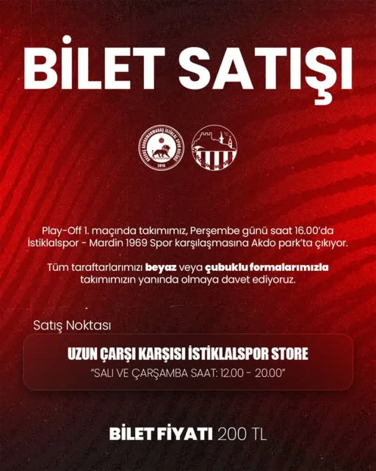 İstiklalspor yönetimi, bu önemli müsabaka için bilet fiyatını tek fiyat uygulamasıyla 200 TL olarak belirledi. Play-Off yolunda takımlarını yalnız bırakmak istemeyen taraftarlar için satış noktası tek merkez olarak açıklandı. Şehrin spor dinamikleri, bu karşılaşmanın bir üst tura geçmek adına hayati önem taşıdığını vurguluyor.