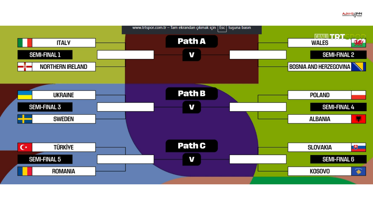 Play-off C Yolu'nda mücadele edecek Türkiye, yarı final galibiyetinin ardından finalde Kosova ile Slovakya arasındaki eşleşmenin galibi ile karşılaşacak. Diğer yarı finalde Kosova, Slovakya'yı ağırlarken, kazanan taraf finalde Türkiye-Romanya eşleşmesinden galip gelen takımla buluşacak. Tüm maçlar tek maçlı eleme sistemi ile 26 Mart yarı finalleri ve 31 Mart finalleri şeklinde oynanacak.
