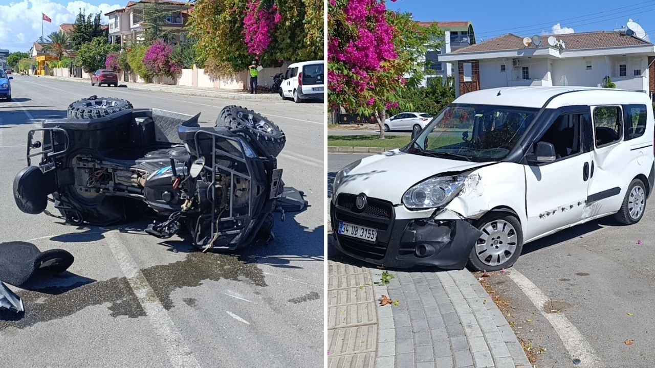 Antalya’nın Manavgat ilçesine bağlı Side Mahallesi Cennetler Caddesi üzerinde meydana gelen trafik kazasında, hafif ticari araç ile ATV çarpıştı. Edinilen bilgilere göre, Kazım Karabekir Caddesi yönüne ilerleyen Çetin Ç. idaresindeki 34 UB 3155 plakalı hafif ticari araç, caddeye ters yönden çıkan Selami Onur C. yönetimindeki 07 AUT 866 plakalı ATV ile çarpıştı. Çarpışmanın etkisiyle ATV savrulurken, sürücüsü metrelerce ileriye düştü.
