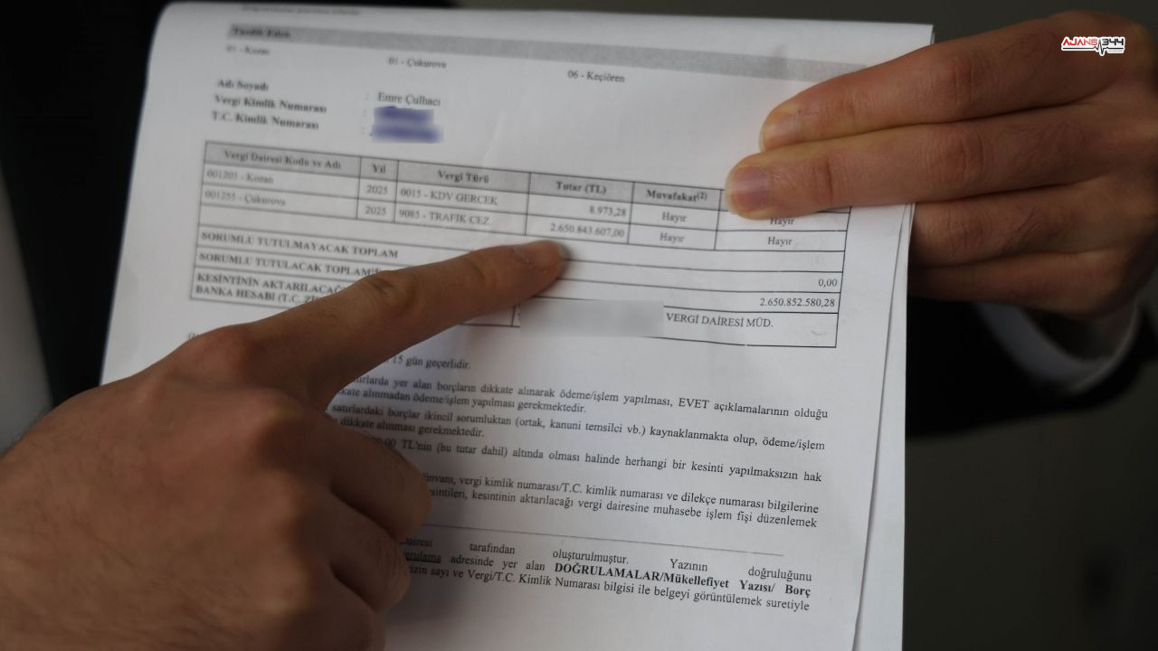 Yıl sonu işlemleri kapsamında “borcu yoktur” yazısı almak isteyen Çulhacı’ya, savcılığın idari biriminden ciddi bir kamu borcu bulunduğu bilgisi iletildi. İlk etapta rakamın yanlış okunduğunu düşünen Çulhacı, yapılan kontrollerde borcun sistemde gerçekten yer aldığını fark etti.
