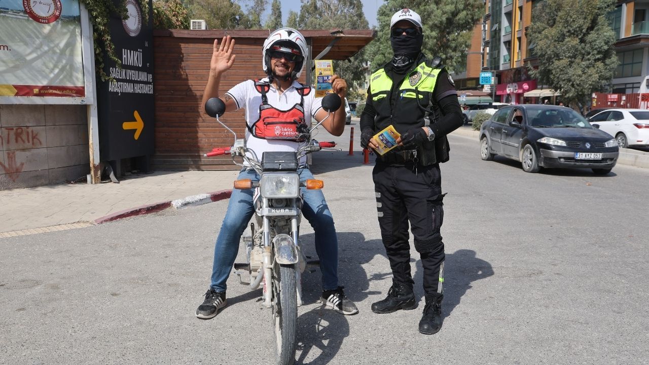 Hatay’da polis ekipleri, kentte meydana gelen trafik kazalarının büyük bölümünü oluşturan motosiklet kazalarını önlemek amacıyla sürücülere yönelik kask denetimi yaptı.