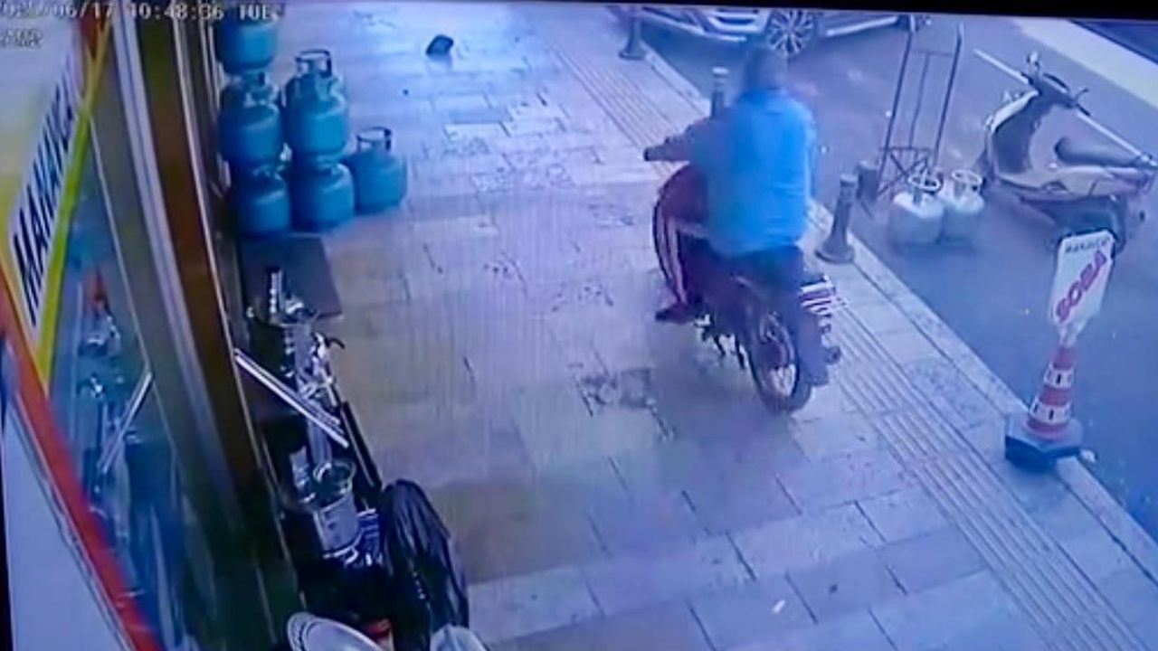 Antalya'nın Manavgat ilçesinde motosikletli 1 kişi, tüpçü dükkanının önünde bulunan tüpü alarak gitti. O anlar güvenlik kamerasına yansırken iş yeri sahibi şikayetçi oldu.