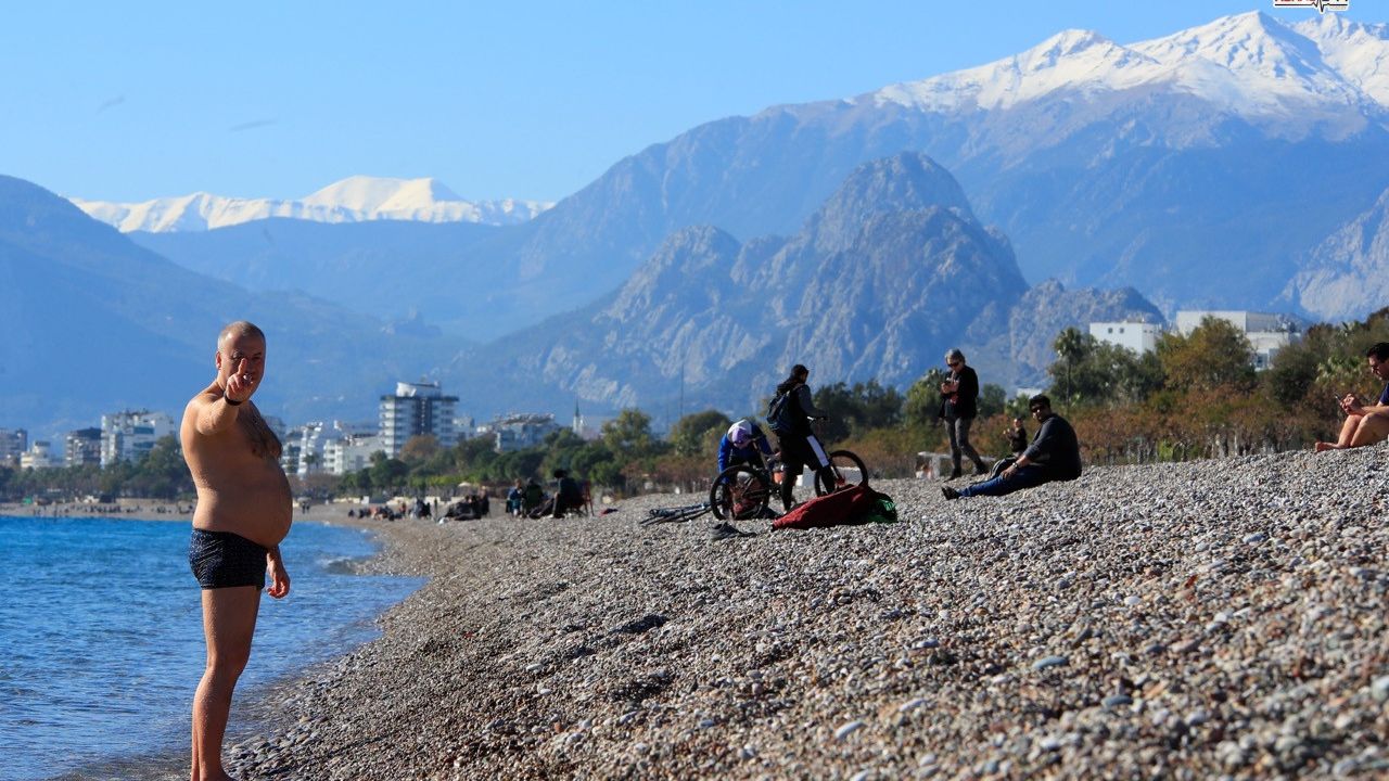 Hafta sonu olması nedeniyle soğuk havaya rağmen güneşi fırsat bilerek Konyaaltı Sahilini dolduran bazı vatandaşlar denize girerken, kimileri ise sahilde güneşlenmeyi tercih etti. Konyaaltı Sahili'nde denize giren vatandaşlardan Nazmi Üstündağ, denizin havadan daha sıcak olduğunu belirterek, "Saklıkent'te kar varken burada denize giriyoruz. Su güzel ama dışarıda esinti biraz üşütebiliyor. Ama deniz gayet güzel, tertemiz. Yaz kış her hafta sonu denize giriyorum, hiç şaşmaz. Doğuda kar, Saklıkent'te kar, burada deniz. Yüzmeye devam" dedi.