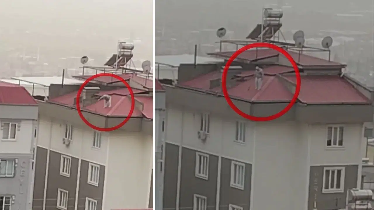 Görgü tanıklarının aktardığı bilgilere göre şahsın üzerinde emniyet kemeri, güvenlik halatı ya da koruyucu ekipman bulunmadı. Çatının en uç noktalarına kadar ilerleyen kişi, su tahliye noktalarını temizlemeye çalıştı. Bu sırada çevrede bulunan vatandaşlar, olası bir dengesizlik durumunda ciddi bir tehlike yaşanabileceği endişesi taşıdı.