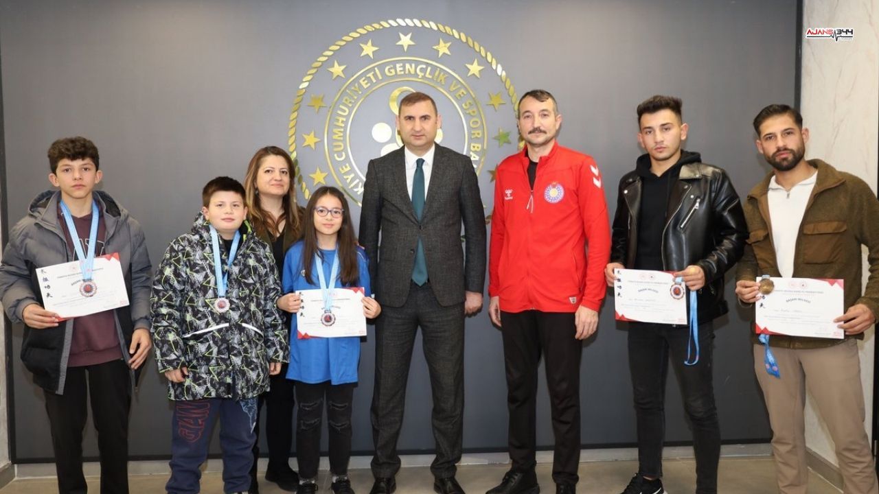 Yalova’da düzenlenen organizasyonda kürsüye çıkmayı başaran sporcular, şampiyona dönüşünde İl Müdürü Yasin Özdemir’i ziyaret ederek sevinçlerini paylaştı. Gerçekleşen ziyarette sporculara antrenörleri de eşlik etti. Görüşmede, müsabaka süreci, elde edilen dereceler ve sporcuların gelecek hedefleri hakkında değerlendirmeler yapıldı.