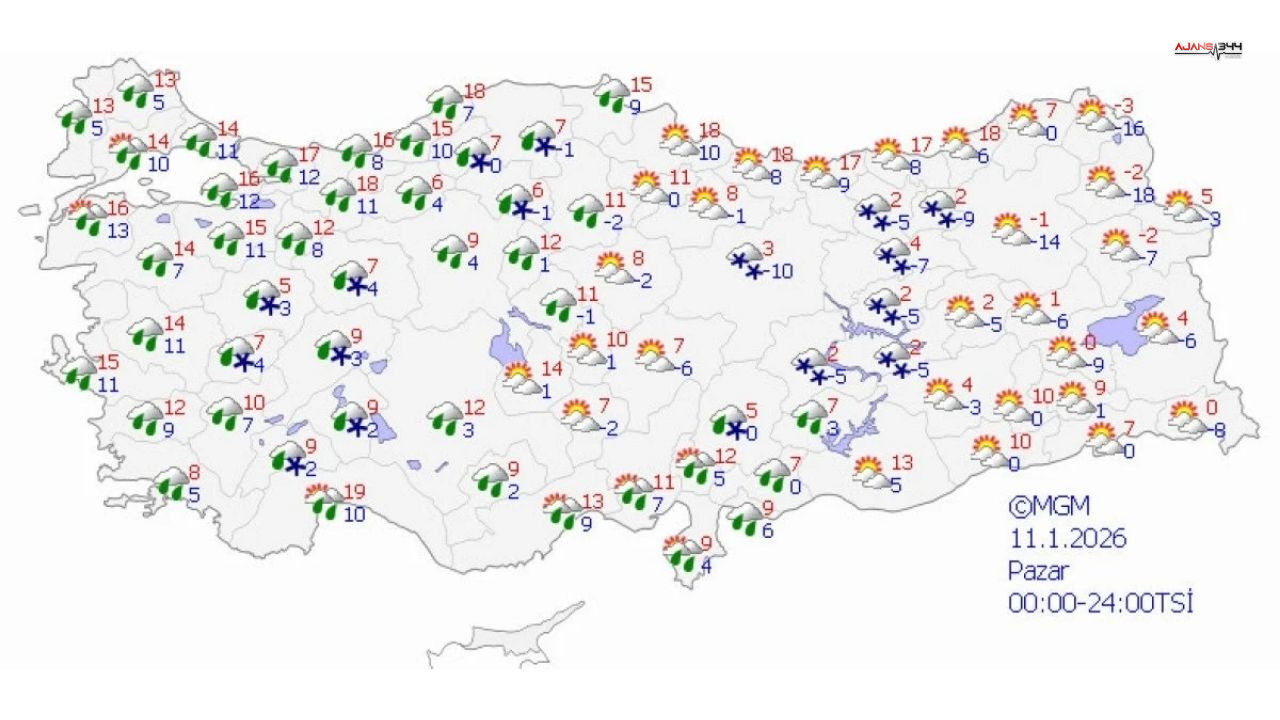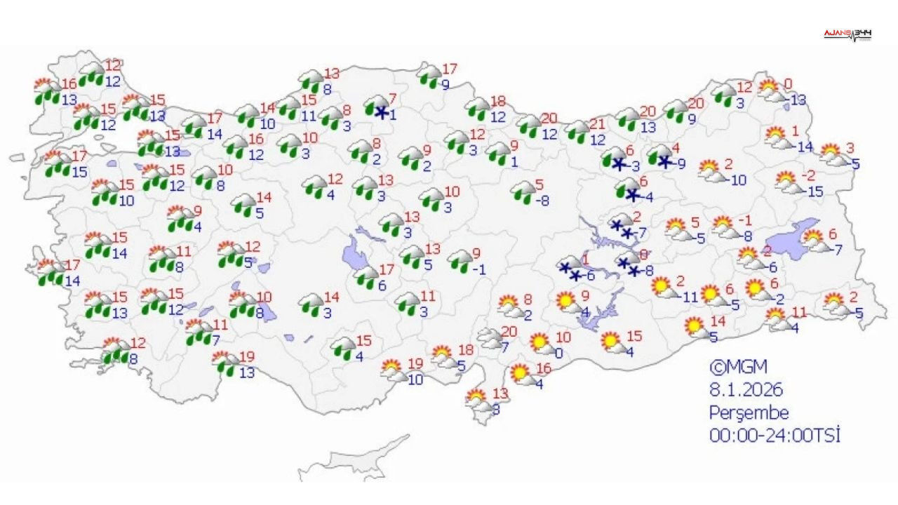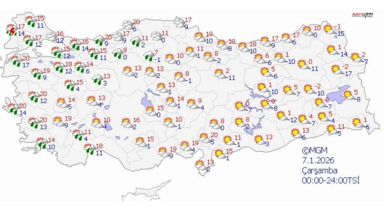 Meteoroloji Genel Müdürlüğü, Türkiye'nin batı ve doğu bölgelerini etkisi altına alacak olan yağışlı ve fırtınalı hava koşulları nedeniyle 7 Ocak 2026 Çarşamba günü için 36 ilde sarı kodlu uyarı yayınladı. Uyarı kapsamındaki illerde kuvvetli sağanak, gök gürültülü yağış ve fırtına bekleniyor.