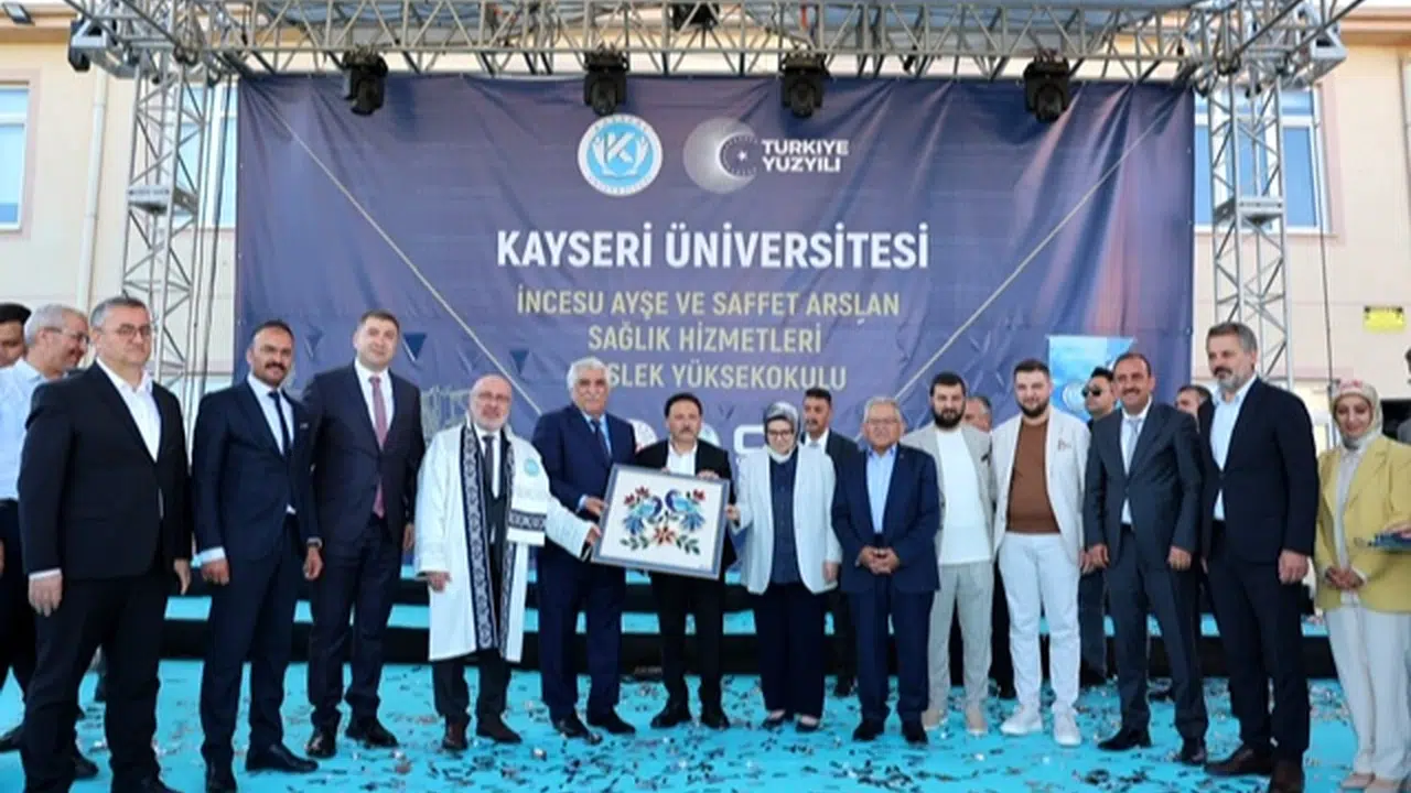 Başarılı iş insanı Saffet Arslan’ın eşi Ayşe Arslan adına inşa ettirdiği Kayseri’nin İncesu ilçesine Sağlık Meslek Yüksekokulu’nda mezuniyet ve şer bağlama töreni yapıldı. Kayseri Üniversitesi’ne bağlı olarak yapılan İncesu Ayşe ve Saffet Arslan Sağlık hizmetleri Meslek Yüksekokulu’nun açılışına Kayseri Valisi Gökmen Çiçek, Büyükşehir Belediye Başkanı Dr. Memduh Büyükkılıç, AK Parti Kayseri milletvekili Ayşe Böhürler, Kayseri Üniversitesi Rektörü Prof. Dr. Kurtuluş Mustafa, Sağlık Müdürü Dr. Mehmet Erşan, İncesu Belediye Başkanı Mustafa İlmek ile üniversite öğretim üyeleri katıldı..