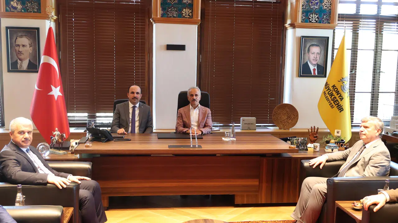Konya Büyükşehir Belediyesi Taş Bina’da gerçekleşen ziyarette, Konya’da bulunmaktan dolayı duyduğu memnuniyeti dile getiren Bakan Uraloğlu, Başkan Altay’a ulaşım alanında yaptıkları işbirliği için teşekkür etti.