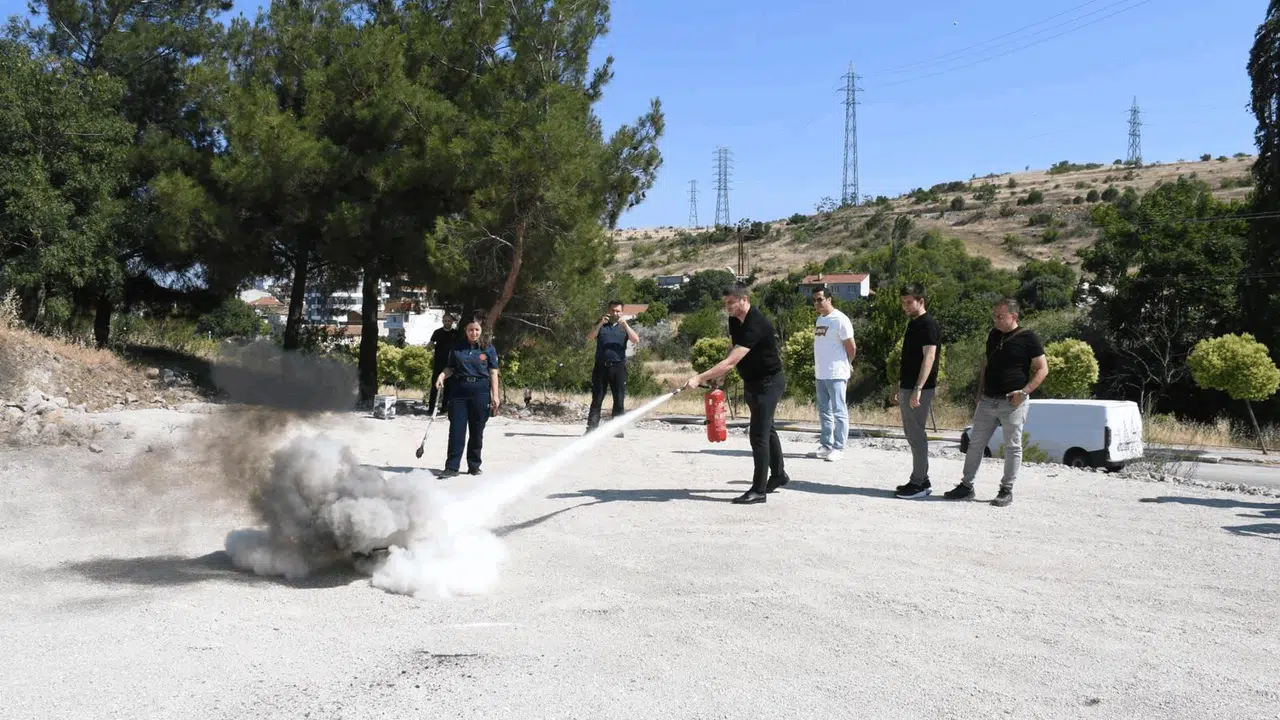 Eğitim aşamasında yangınla mücadele yöntemleri, söndürme teknikleri ve doğru hareket edebilme kabiliyeti anlatılarak uygulamalı eğitim gerçekleştirildi.