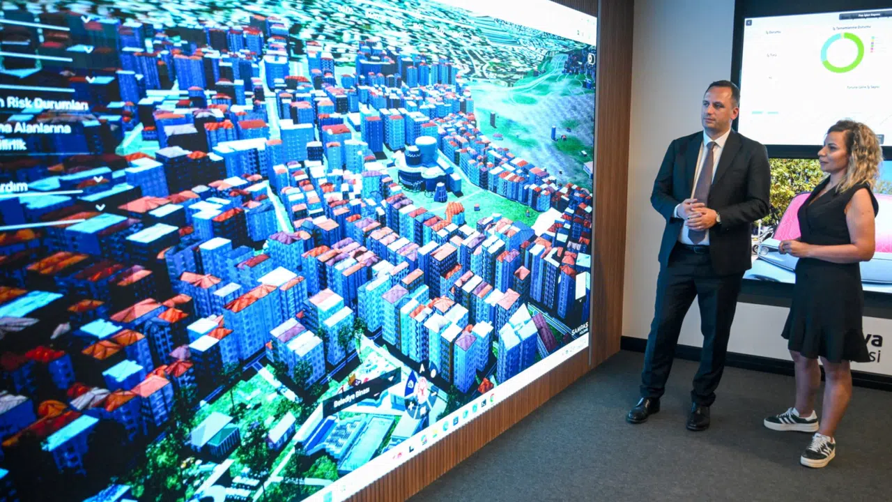“Kentsel dönüşüm olmadan kent olmaz” diyen Başkan Eşki, merkezde üretilen verilerin Bornova’daki binaların deprem riskini de kodladığını; riskli yapıların kırmızı, orta risklilerin sarı, dayanıklı binaların yeşil olarak işaretlendiğini söyledi. Eşki,” Veriye dayalı bu tematik harita güvenli yapı stokuna giden yolun temelini oluşturacak” dedi. Dijital ikiz modeli üzerinden kentsel dönüşüm öncesi ve sonrası dijital ikizde modellenip, en uygun projeler üretilecek. Binaların dönüşümü için güçlendirme ve veya yeniden yapım maliyetleri yapay zeka destekli teknolojilerle karşılaştırılıp en uygun çözümlere ulaşmaya çalışacağız.