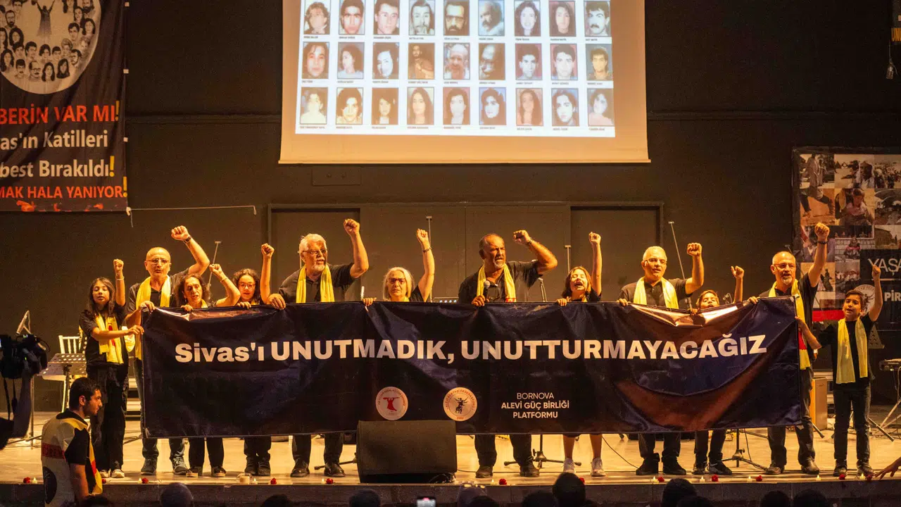 Pir Sultan Abdal Kültür ve Dayanışma Derneği Bornova Şube Başkanı Barış Çelik, katliamı gerçekleştirenlerin amaçlarına ulaşamadığını vurguladı. “2 Temmuz 1993, insanlık tarihine kara bir leke olarak kazındı. Barışı savunanlar, özgürlüğü haykıranlar yakıldı. Pir Sultan’ın, Nesimi’nin yolundan gidenler susturulmak istendi ama başaramadılar. Çünkü biz hâlâ buradayız. Unutmadık, unutmayacağız, unutturmayacağız” dedi.