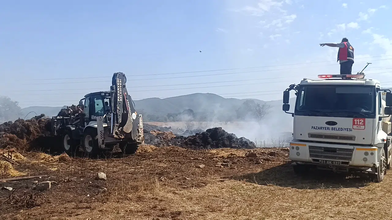 Olay, Doğanlar Mahallesi Çiğdemlik mevkiinde meydana geldi. Hüseyin Çakır’a ait çiftlikte henüz bilinmeyen bir nedenle alevler bir anda yükseldi. Kısa sürede büyüyen yangına Pazaryeri Belediyesi itfaiye ekipleri hızla müdahale etti. Yoğun çabalar sonucu alevler kontrol altına alınırken, çok sayıda saman balyası kül oldu.