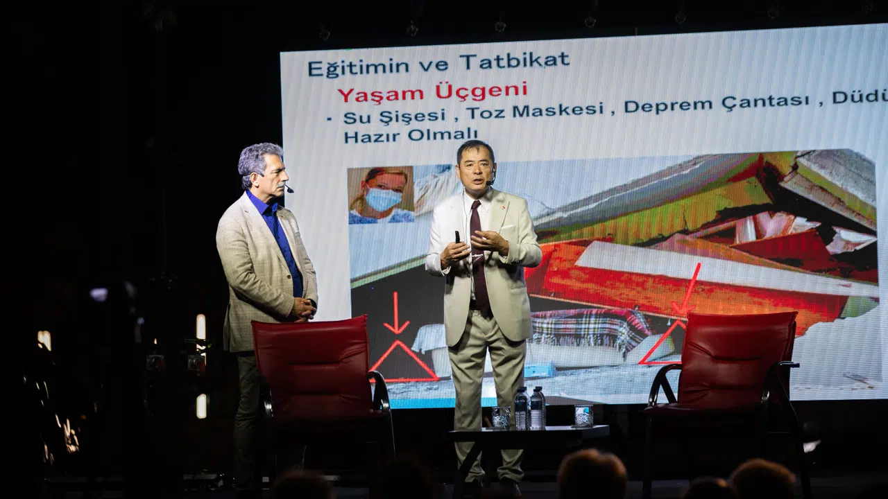 Konferansta Moriwaki, depremlerde can kaybının önlenebilmesi için yapı denetiminin artırılması ve sismik izolatörlerin yaygınlaştırılması gerektiğini vurguladı. Türkiye’nin bir deprem ülkesi olduğunu hatırlatan Moriwaki, Japonya’daki afetlere hazırlık kültürünü örnek göstererek, “Depremi engelleyemeyiz ancak hasarı yüzde 70 oranında azaltabiliriz. Bunun yolu, hükümetlerin, belediyelerin, okulların, iş yerlerinin ve evlerin afetlere karşı önceden plan yapmasından geçiyor” dedi. Deprem anında merdiven kullanılmaması, deprem çantasının kapıya yakın bulundurulması gibi hayati kurallara da dikkat çekti.