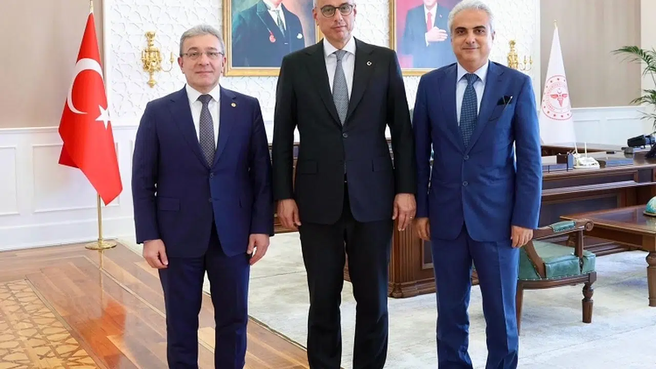 Rektör Yılmaz’a, Sağlık Bakanlığı ziyaretinde DEÜ Tıp Fakültesi Dekanı Prof. Dr. Serdar Bayrak eşlik ederken, görüşmede DEÜ’nün sağlık altyapısı, yeni yatırımlar ve ortak projeler değerlendirildi.