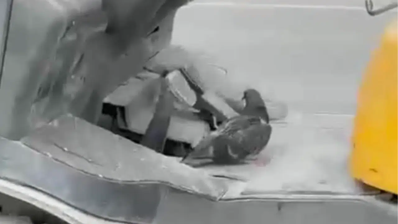 Bir forklifin kabininde seyahat eden bir kuş, hem şaşkınlık yarattı hem de görenleri gülümsetti.