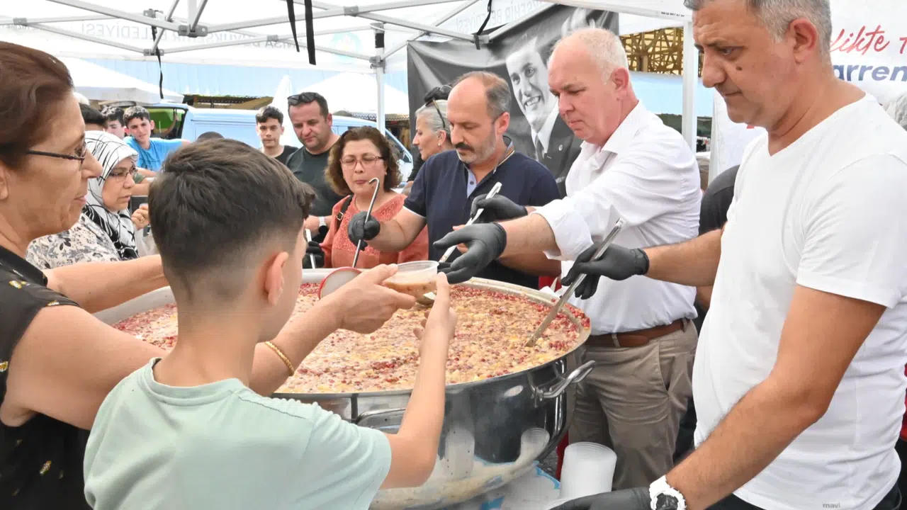 Şehrin farklı noktalarında sürdürülecek olan aşure dağıtımları, Manisa Büyükşehir Belediyesi Sosyal Hizmetler Dairesi Başkanlığı koordinesinde gerçekleştiriliyor. Sosyal Hizmetler Dairesi Başkanı Volkan Sert ile Esnaf ve Sanatkarlar Kredi ve Kefalet Kooperatifi Başkanı Destan Bulgay’ın da katıldığı programda, yapılan duaların ardından, özenle hazırlanan aşureler vatandaşlara ikram edildi. Paylaşmanın ve dayanışmanın güzelliğini yansıtan programda, Manisalılar hem bu anlamlı geleneği bir arada yaşamanın mutluluğunu paylaştı.