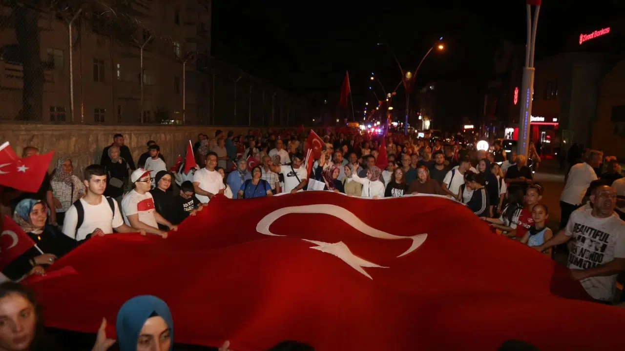 Etkinlikler akşam saatlerinde Kavaklı Kongre Sarayı önünden düzenlenen fener alanı yürüyüşü ile devam etti. Kongre sarayı önünde toplanan vatandaşlar, Başkan Sezer ve beraberindeki heyet ile birlikte coşku ile Anıtpark’a yürüdüler. Yürüyüşün ardından saygı duruşu ve İstiklal Marşı’nın okunması Anıtpark’ta başlayan törende, Kuran-ı Kerim tilaveti sonrasında şehitler için dualar edildi.