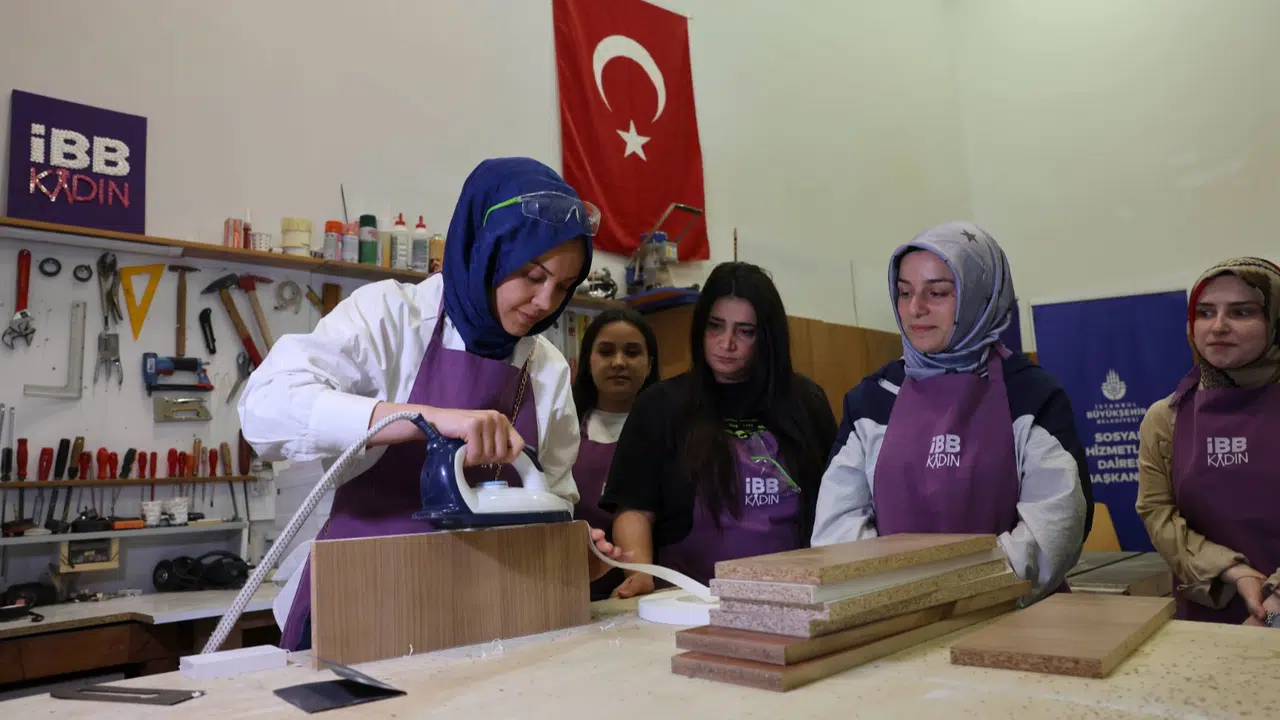 İstanbul Büyükşehir Belediyesi (İBB), kadınların yaşamın her alanında etkin, özgüvenli ve donanımlı bireyler olarak var olmalarını destekleyen çalışmalarını sürdürüyor. Bu kapsamda İBB Kadın, “Yaratıcı Kadınlar için Marangozluk Atölyesi” düzenledi. Bakırköy’de bulunan İBB Sosyal Hizmetler Dairesi Başkanlığı Marangozhanesi’nde dün gerçekleştirilen “Kadınlar İçin Temel Marangozluk Becerileri Giriş Eğitimi” atölyesine katılan kadınlar, ahşap, MDF, sunta gibi malzemelerin özellikleri ve kullanım alanlarını, dekupaj, freze, planya, zımpara ve benzeri temel el aletlerinin kullanımı, birleştirme, cilalama, yapıştırma, çizme, vidalama, dolap kulp/menteşe montajı, ray takma gibi pratik uygulamaları ve raf, ayakkabılık, çerçeve gibi küçük mobilya ve ahşap eşyaların yapımını öğrendi.