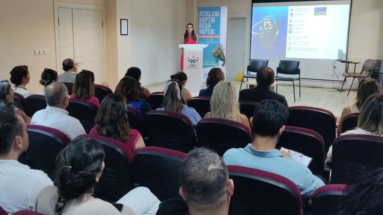 Çiğli Belediyesi’nin düzenlediği “Atıkları Kaptık, Resif Yaptık” seminerinde, endüstriyel tasarımcı ve proje yürütücüsü Nermin Sena Özger, atıkların dönüşümünden deniz ekosistemine katkılarına uzanan süreci katılımcılarla paylaştı.