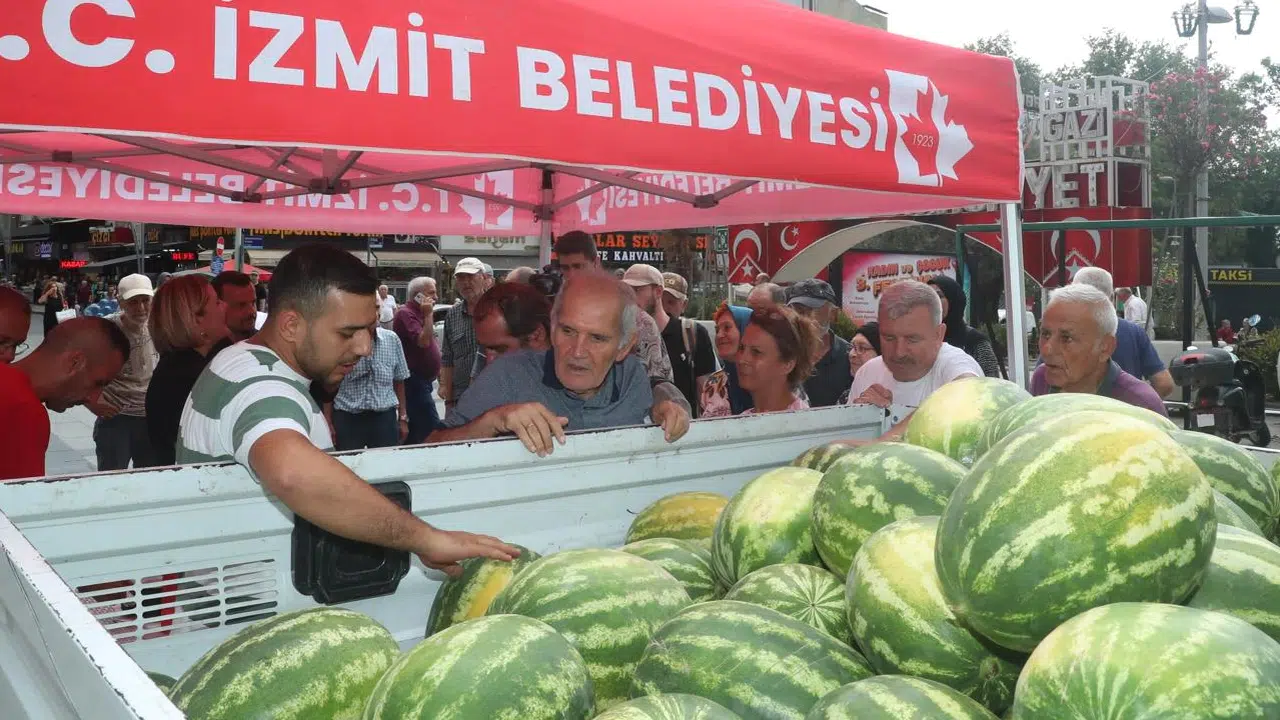 İzmit Belediyesi, Bayraktar’daki üreticilerden satın aldığı karpuzları kilosu 5 liradan vatandaşlara ulaştırıyor. Belediye önünde kurulan stantta SARBAŞ ekipleri tarafından fişli ve hukuki şekilde satışa sunulan karpuzlar, üreticiden doğrudan tüketiciye ulaşıyor. Hürriyet, “Tükendikçe yeniden üreticiden alıp getireceğiz. Tarladan halka... Kaça aldıysak, o fiyata satıyoruz” dedi.