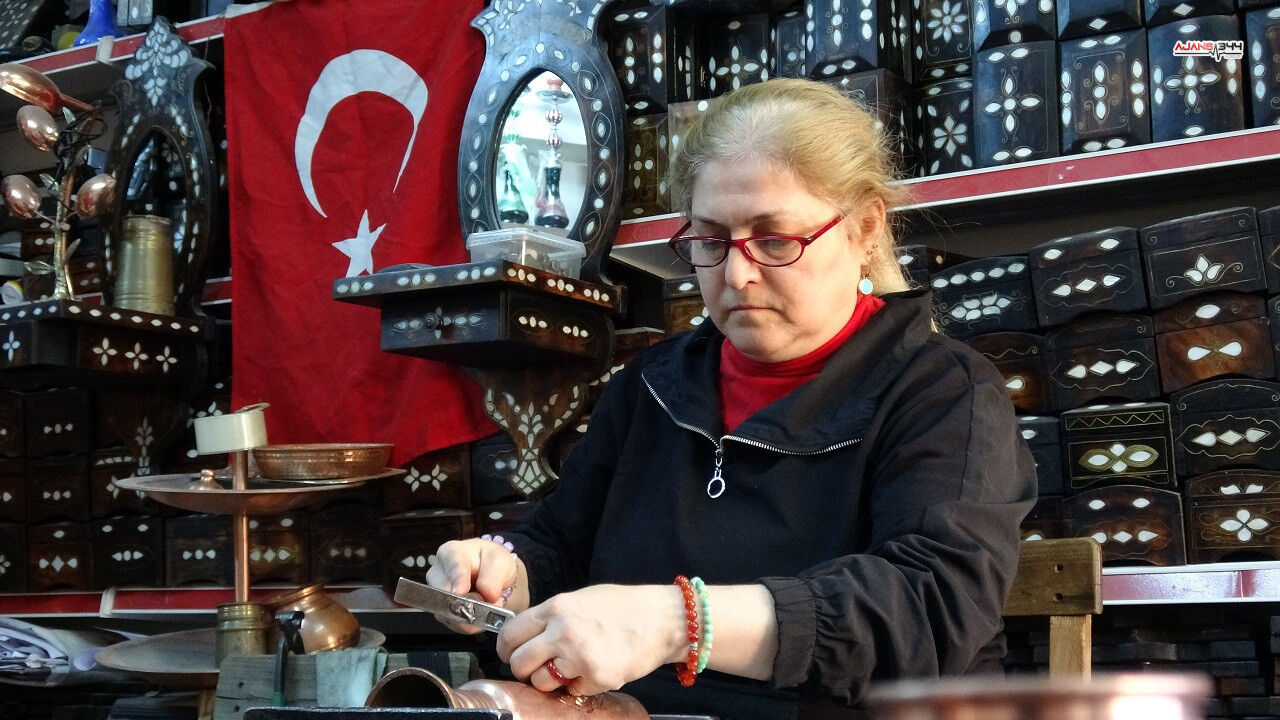 Gaziantep'te ev hanımıyken bakır işlemeciliği kursuna katılan 54 yaşındaki Emine Sibel Bakırcı, 10 yılda ustalığa yükselerek geleneksel meslekte erkeklere taş ç...