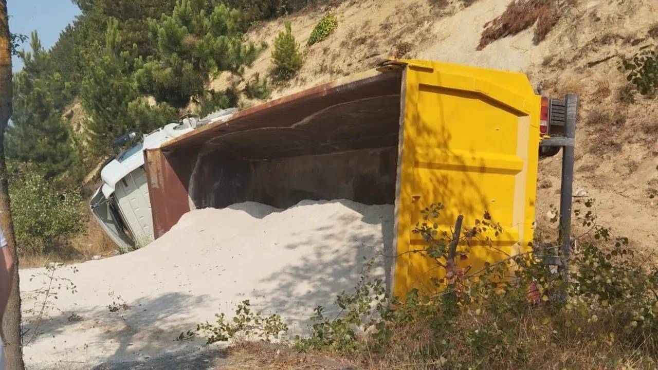 Yerleşim alanı ve diğer araçların bulunduğu bölgede kontrolü kaybeden sürücü, ani bir kararla direksiyonu dağ tarafına çevirerek kamyonun devrilmesini sağladı. Devrilme sonucu kamyonun kasasındaki kum yola saçıldı.