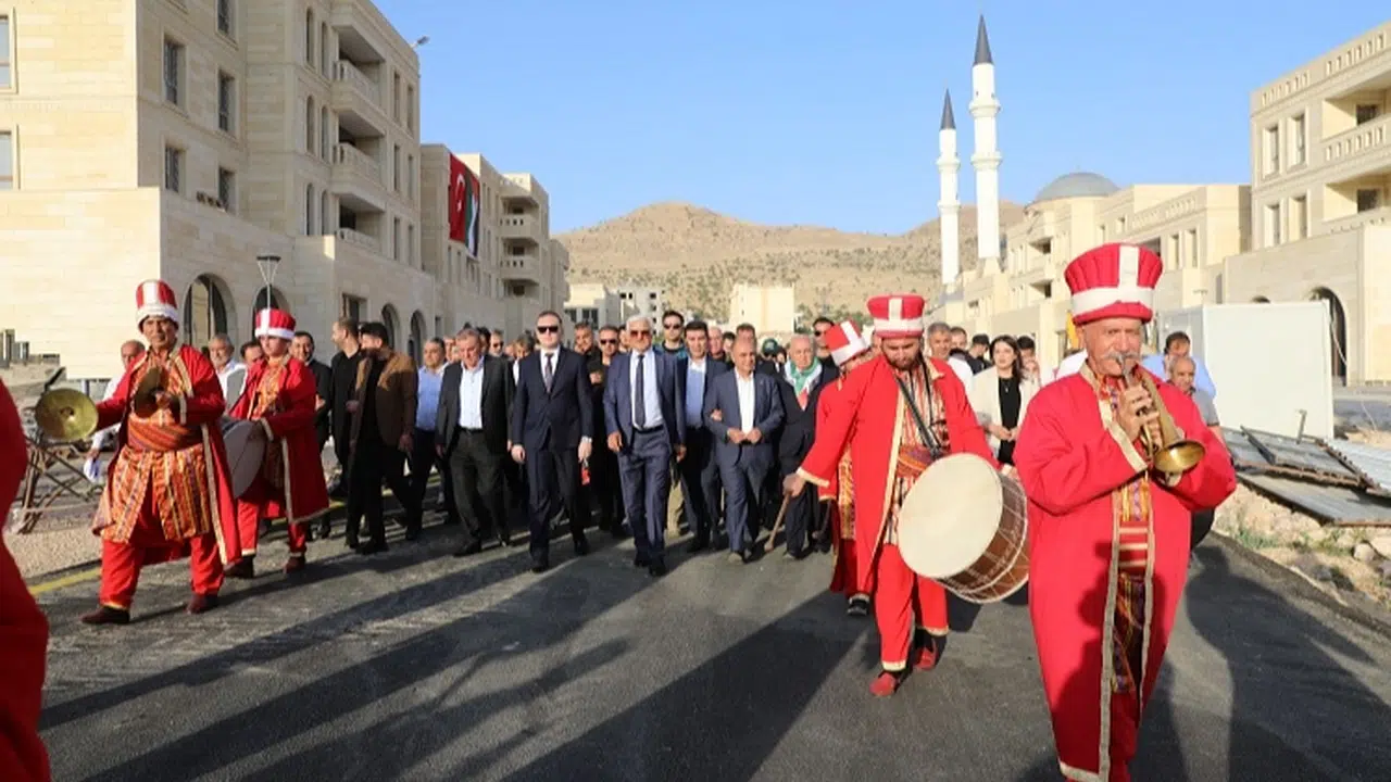 Saygı duruşu ve İstiklal Marşı'nın okunmasının ardından protokol üyeleri ve davetliler, Filistin ve Türk bayrakları eşliğinde kortej yürüyüşü gerçekleştirdi.