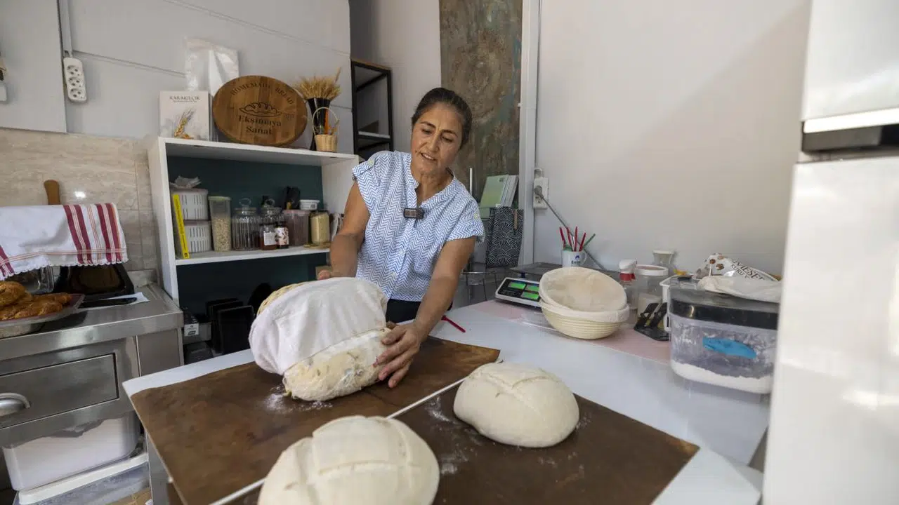Yaklaşık beş yıl önce evinin mutfağında başladığı üretim yolculuğunu, bahçesine kurduğu atölyede sürdüren Zübeyde Şahin, tamamen katkısız ve doğal unlarla ekşi mayalı ekmekler üretiyor. Ev tipi taş tabanlı elektrikli fırınla üretimini gerçekleştiren Şahin, kazancını yeniden işine yatırarak atölyesini adım adım geliştiriyor.