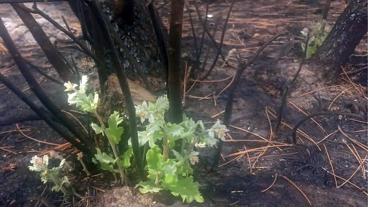 Edirne’nin Enez ilçesinde kısa süre önce çıkan orman yangınının tahrip ettiği alanda, bir meşe ağacının gövdesinde beliren taze filizler görenleri şaşırttı.