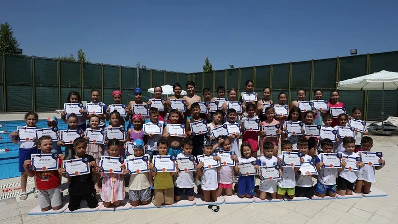 Bursa Büyükşehir Belediyesi’nin modern tesislerinde deneyimli antrenörler eşliğinde spor yapma imkanı bulan çocuklar, hem tatilin hem de havuzun tadını çıkardı. Eğlence dolu geçen ilk dönem sonunda minik yüzücüler, sertifika almanın mutluluğunu yaşadı.